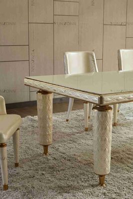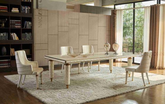Eettafel met van het de Dekkings Wit Aangemaakt Glas van het Borduurwerkleer Hoogste het Roestvrije staalkader voor Huis