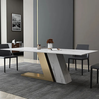 Wij kunnen bij de lijst zitten en van een prachtige maaltijd genieten, delend de kleine gebeurtenissen van de dag rond de lijst. Wij keuren de nieuwe hoog-temperatuur-bestand technologie van de rotsplaat, met de lijstvoeten van het roestvrij staal vergulde draadtrekken goed, en de versterkte super dikke van de de rotsplaat van de steenpijler de lijstvoeten, het patroon kunnen aanpassing steunen.