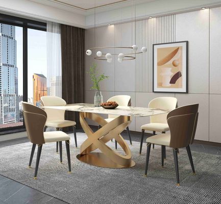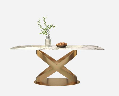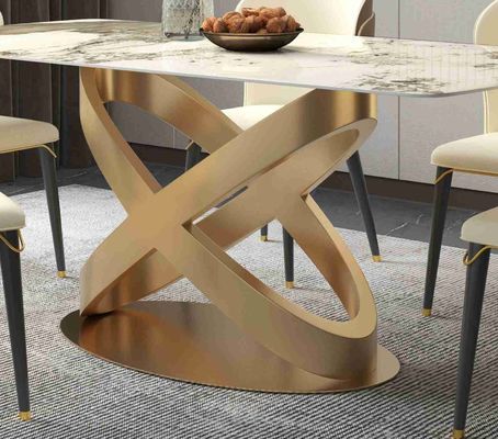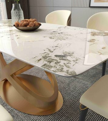 Moderne Witte Rechthoekige Steeneettafel met de Nieuwe Voetstukken van het Ontwerpbrons