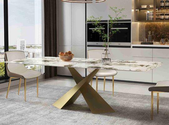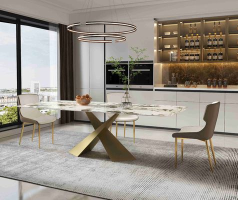 Er zijn vele types van driepoten voor deze eettafel om te kiezen van. De nieuwe materiële rotsraad wordt gebruikt als Desktop, duurzaam en slijtvast, met een marmeren patroonpaneel, maar verlaat de dikte van marmer.