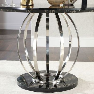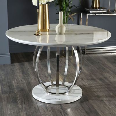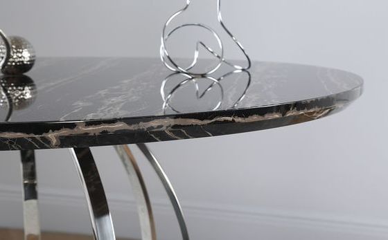 Smakelijke Marmeren hoogste ss roestvrij staal zilveren eettafel met geplaatste stoelen