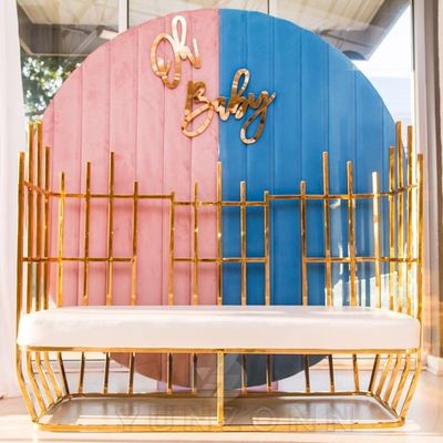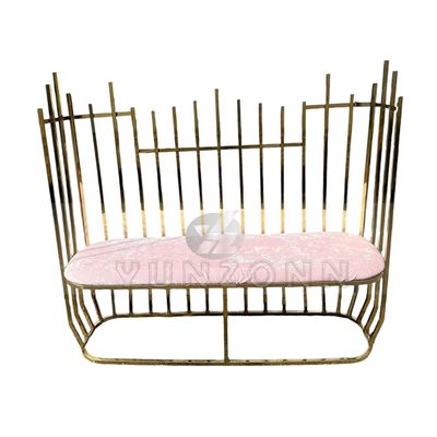 Een hoogwaardige lange rug trouwbank in goudkleur, met een opvallend spijkerontwerp en luxe PU-bekleding met een roestvrijstalen frame.