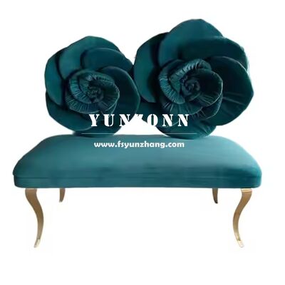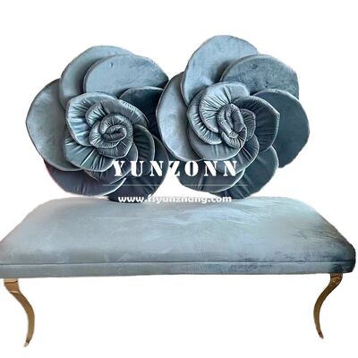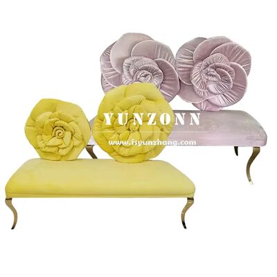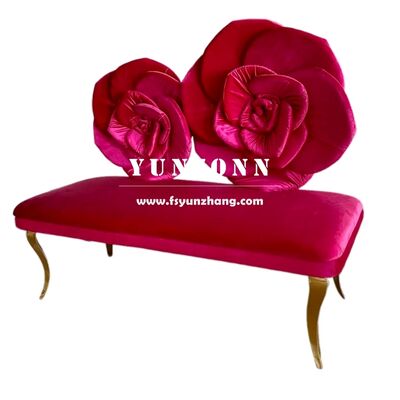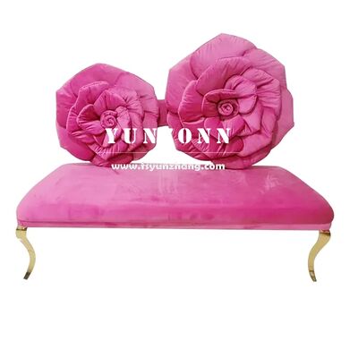 Moderne roestvrijstalen bank met roze bloem achterkant design Roze rood fluweel stoel voor hotel bruiloft geliefde