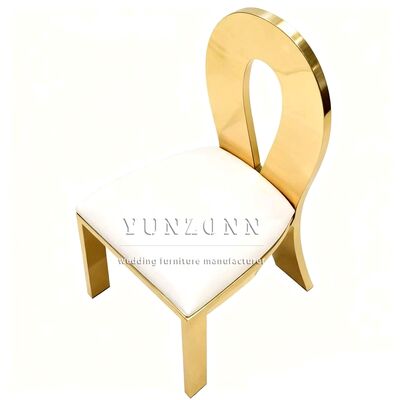 | Productnaam: | Moderne Stijl Gouden Roestvrijstalen Frame Witte Pad Bruiloft Evenement Banket Hotel Eetkamer Metalen Stoelen |