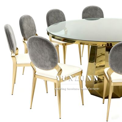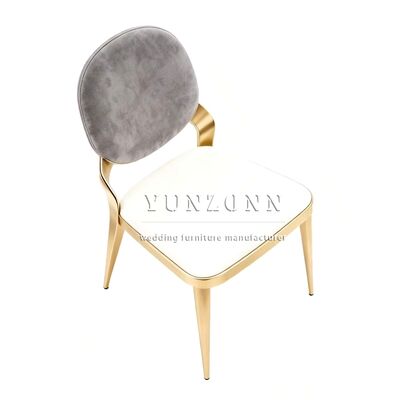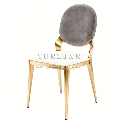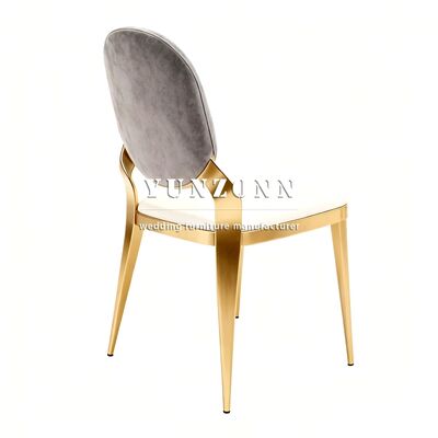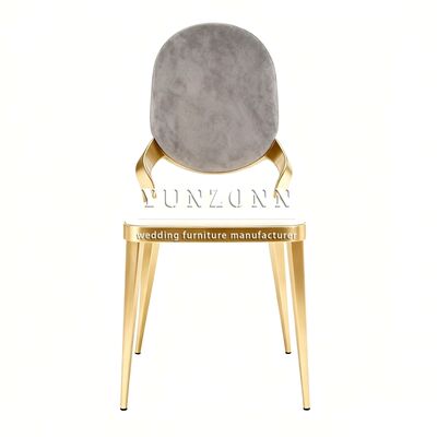Groothandel Luxe Metalen en Grijze Stof Ronde Rug Stapelbare Gouden Hotel Banket Bruiloft Evenement Stoelen te Koop |