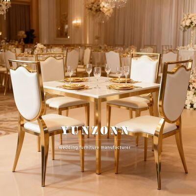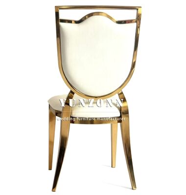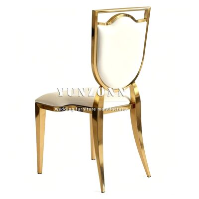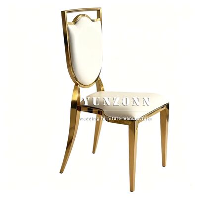 Moderne Europese bruiloftsfeest Banketzaal Meubelen Roestvrij staal frame Luxe witte eetstoel |