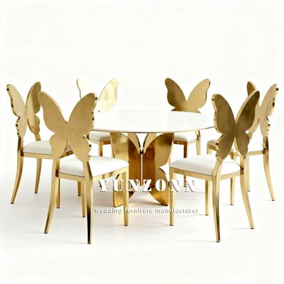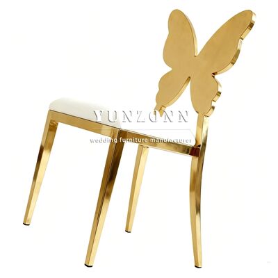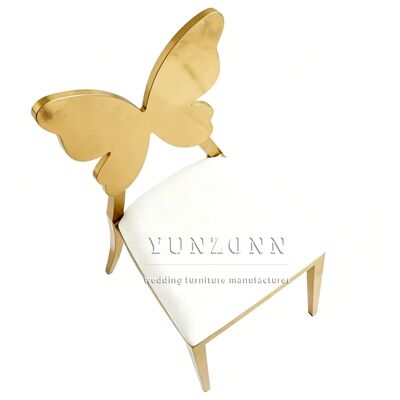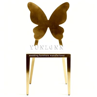 Professionele productie roestvrij staal vlinder rug comfortabele eetstoel gouden rugleuning bruiloft en evenement stoelen |