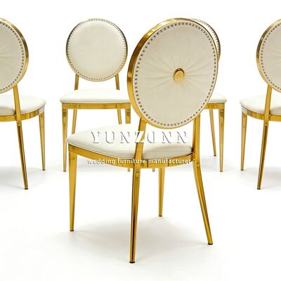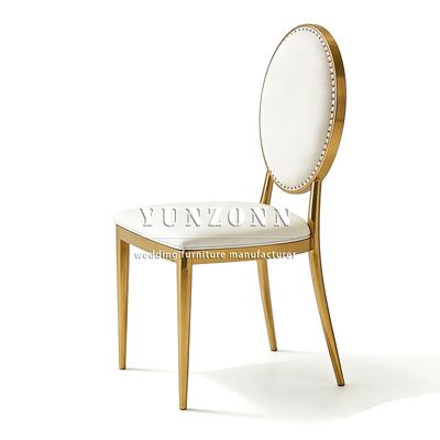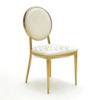 | Productnaam: | SLuxe witte PU leer van roestvrij staal Duurzame trouwstoel voor hotel Eten buiten villa Woonkamer Gebruik met modern design |