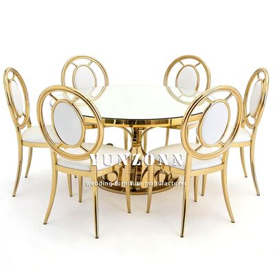 | Productnaam: | Luxe bruiloftsbenodigdheden Duurzame dinerstoel van roestvrij staal in goud voor bruiloft en banketten in het buitenleven |