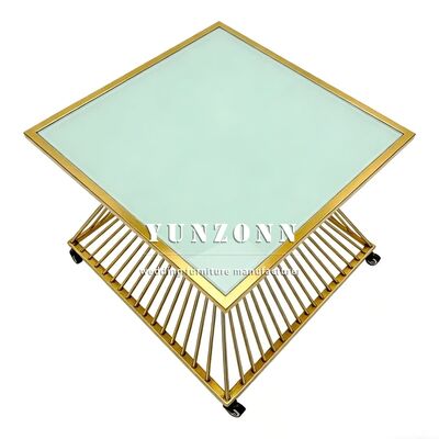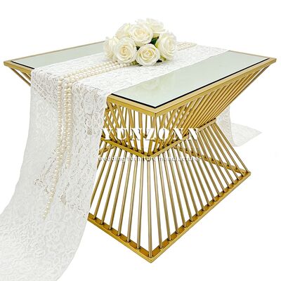 Top Sale Fashion Design Square Shape Glass Top Stainless Steel Wedding Cake Table