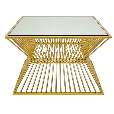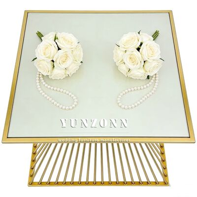 Top Sale Fashion Design Square Shape Glass Top Stainless Steel Wedding Cake Table 36