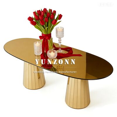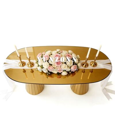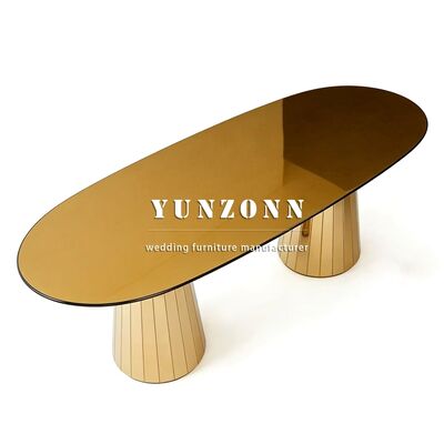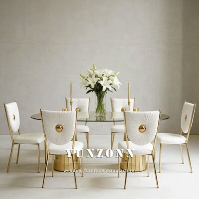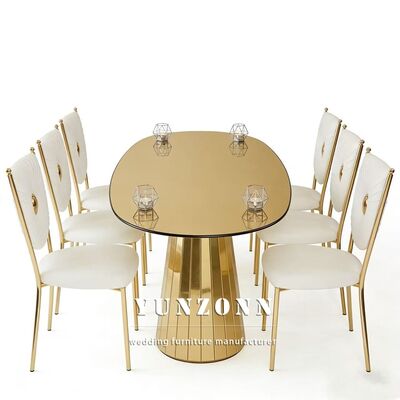 | Productnaam: | Gouden Roestvrij Stalen Eettafel en Stoelenset Glazen Tafel Bruiloft Meubilair voor Hotelgebruik |