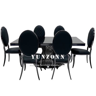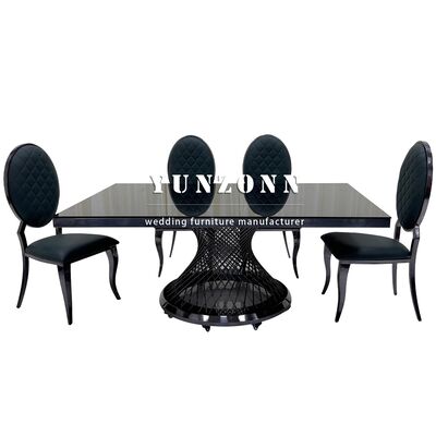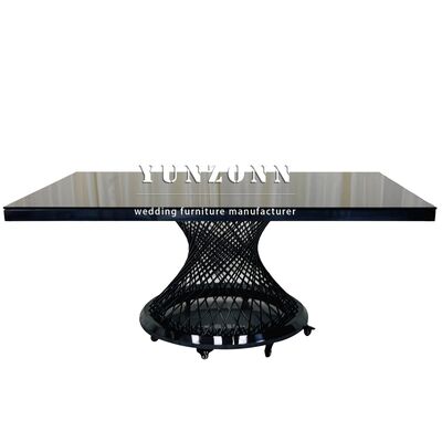 | Productnaam: | Hotel Banquet Glas Top Zwart Eettafel Roestvrij staal Rechthoekig Metalen Huwelijkstafel |