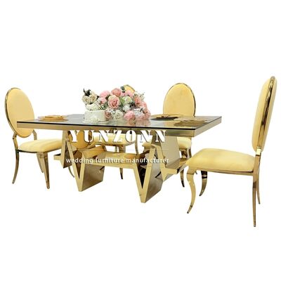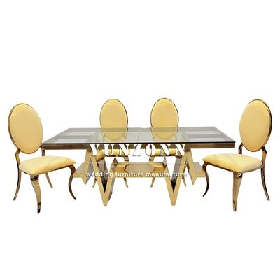 | Productnaam: | Groothandel Onkruidmeubelen Tafel Moderne luxe goud roestvrij staal glas Eetkamer Tafel 6 stoelen sets |