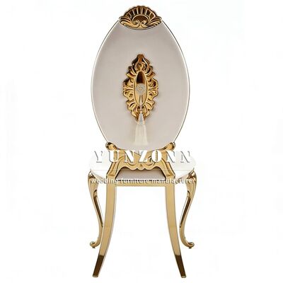 | Productnaam: | Fabriek van meubels Directe verkoop van roestvrij staal Goudgeplatte stoelen in klassieke stijl met hoge rug, geschikt voor bruiloften en banketten |