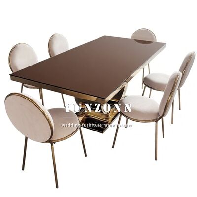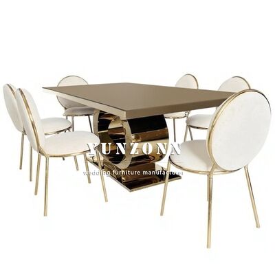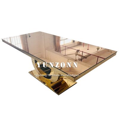 | Productnaam: | Best verkopende luxe ronde basis trouwtafel goud roestvrij staal en spiegelglas top modern design hotelmeubilair |