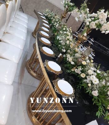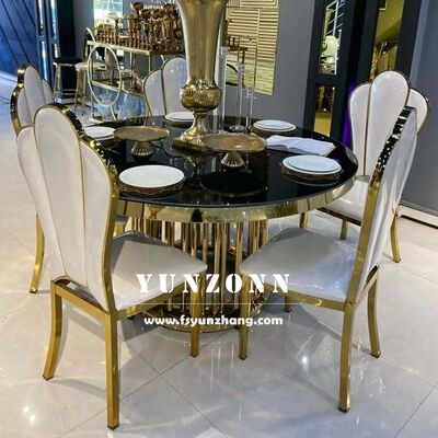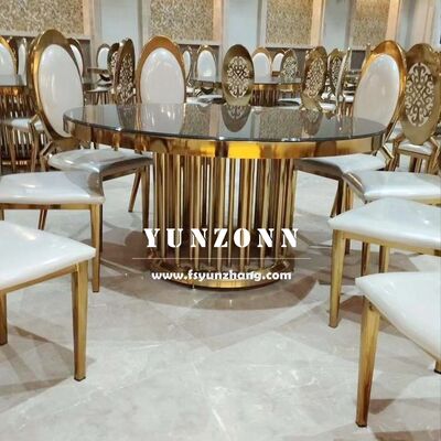 | Productnaam: | Luxe Roestvrij Staal Gouden Metalen Basis Hotel Meubilair Glazen Top Bruiloft Serpentine/Ronde Tafel |