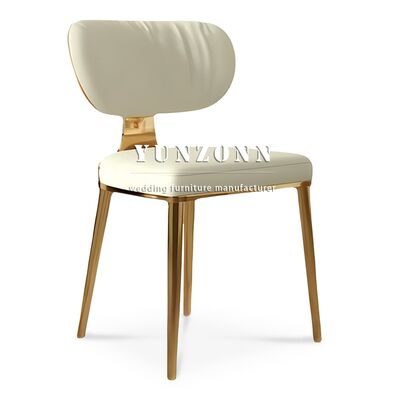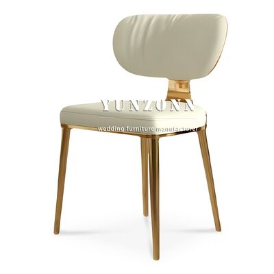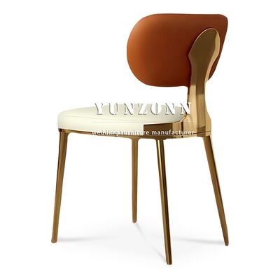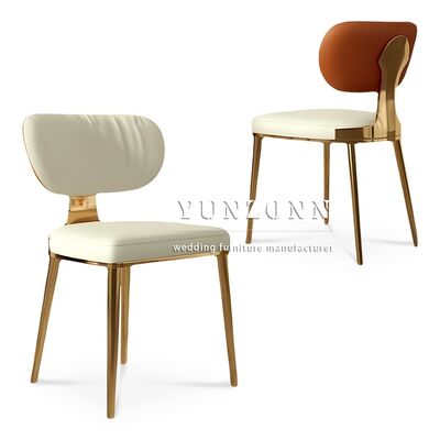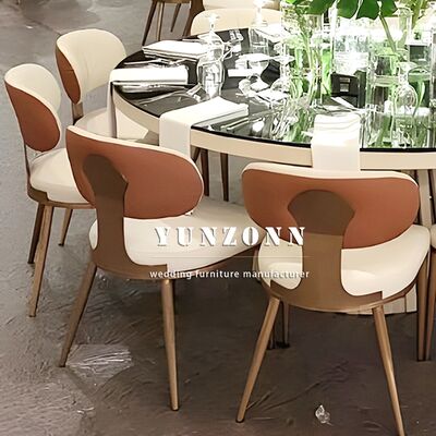 | Productnaam: | Huwelijksfeest Luxe Nieuw Modern Design Feest Huur Bruin Lederkussing Roestvrij staal Gouden stoelen voor evenement |
