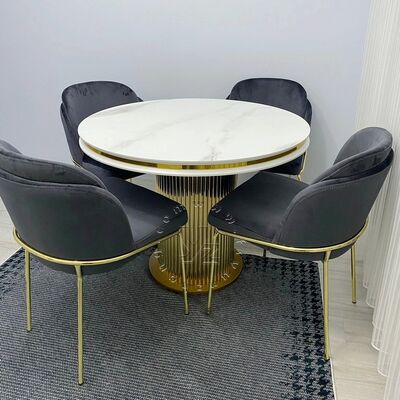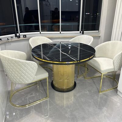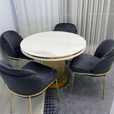 | Productnaam: | Moderne Gouden Roestvrijstalen Eettafel met Rond Sokkel Marmer Huis Villa Hotel Bruiloft Stijlvolle Hedendaagse Meubels |