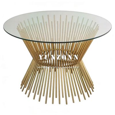 | Productnaam: | Gouden Metalen Draad Moderne Designer Grote Tafel Met Rond Glazen Spiegelblad Hoge Standaard Kwaliteit Huis & Hotels Salontafels |