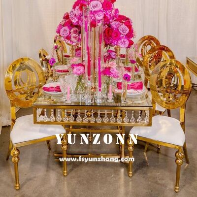 | Productnaam: | Yunzhang Meubelen Gouden Roestvrij Staal Kristallen Banket Eettafel Luxe Bruiloft Tafels en Stoelen te Koop |