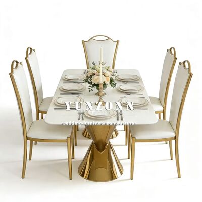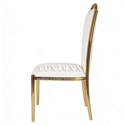| Productnaam: | Moderne roestvrij metaal eetbanketstoelen met wit PU Groothandel goud huren voor huismeubelen voor huis hal appartement |