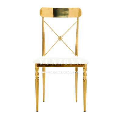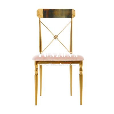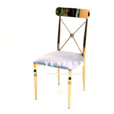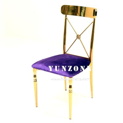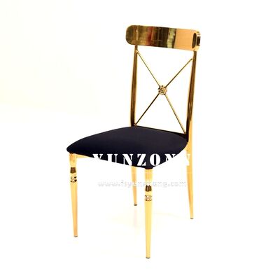 | Productnaam: | Moderne gouden roestvrij staal kruis rug Eetstoel voor bruiloften Huis Hotels Evenementen Verhuur Fluwelen stof met SS frame |