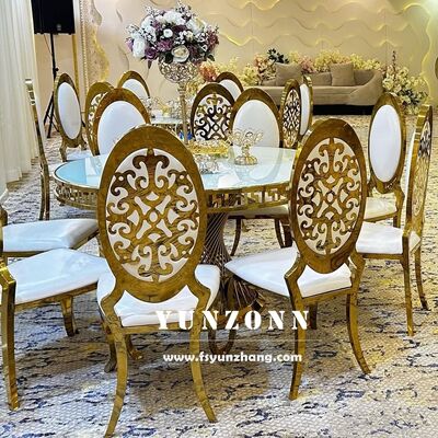 | Productnaam: | Luxe Royal en Modern Gold hotel stoelen met speciale gesneden patroon roestvrij staal materiaal voor bruiloft diner stoel |