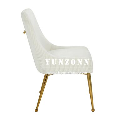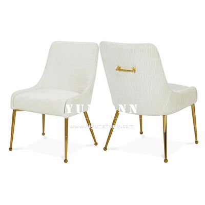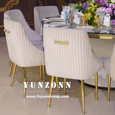 | Productnaam: | Luxe Hotel Gouden Roestvrij Stalen Tubulaire Gestoffeerde Handgreep Lijn Rug Beige Fluweel Gestoffeerde Eetkamerstoelen voor Diner Kamer |
